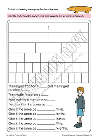 Can your students identify the larger fraction from a choice of two? In the first two tasks in this unit, students complete the 'fraction wall' then answer the questions that follow about fractions that are the same as ___. For example, two tenths is the same as ___? or One is the same as ___ thirds. Other tasks require students to compare the size of fractions using the provided information and complete sentences with < or >. A word problem and an ordering task complete this unit.