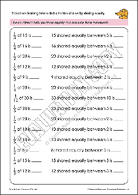 One page each in this unit focuses on sorting sets into groups of three, four or five. The final page requires students to complete the word and number sentences about sharing equally between 2, 3, 4, 5, 6 and 10. Counters or something similar are useful in this unit.