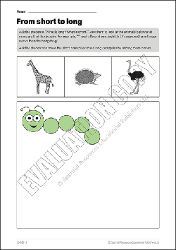 What is long? What is short? In this task, students compare the body parts of the pictured animals using this terminology, then make a short caterpillar into a long caterpillar .